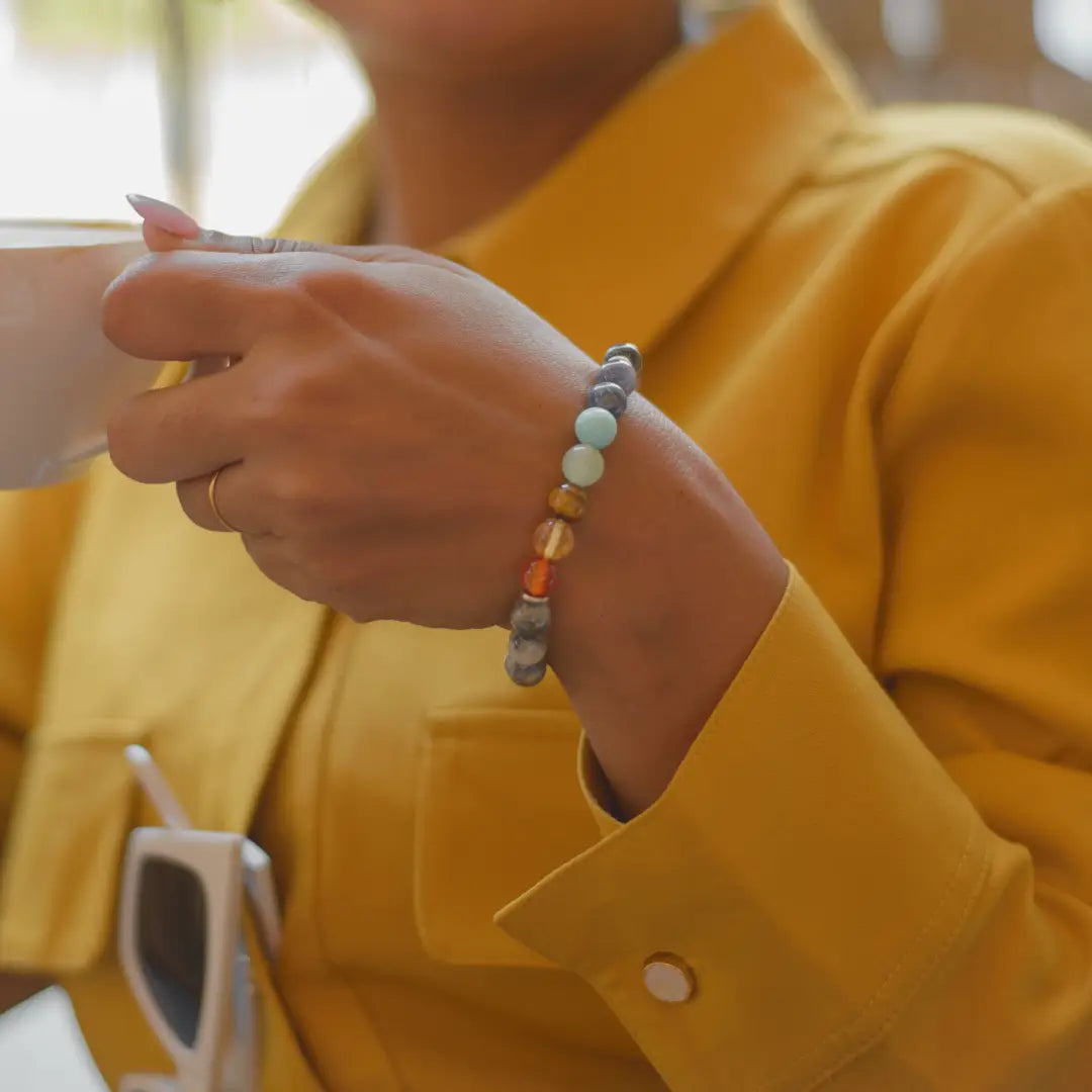 Balances and energizes all seven chakras for harmony and positivity. Cat’s Eye protects from negativity, boosts confidence, intuition, and attracts prosperity.