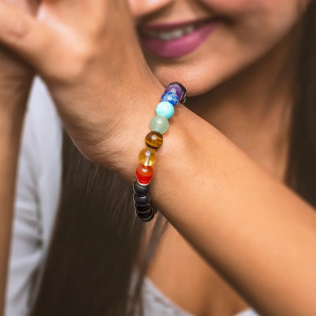The 7 Chakra with Hematite bracelet harmonizes the body’s seven energy centers while offering the powerful grounding benefits of Hematite. It shields from negativity, enhances focus and courage, and keeps you balanced in both spiritual and practical life.