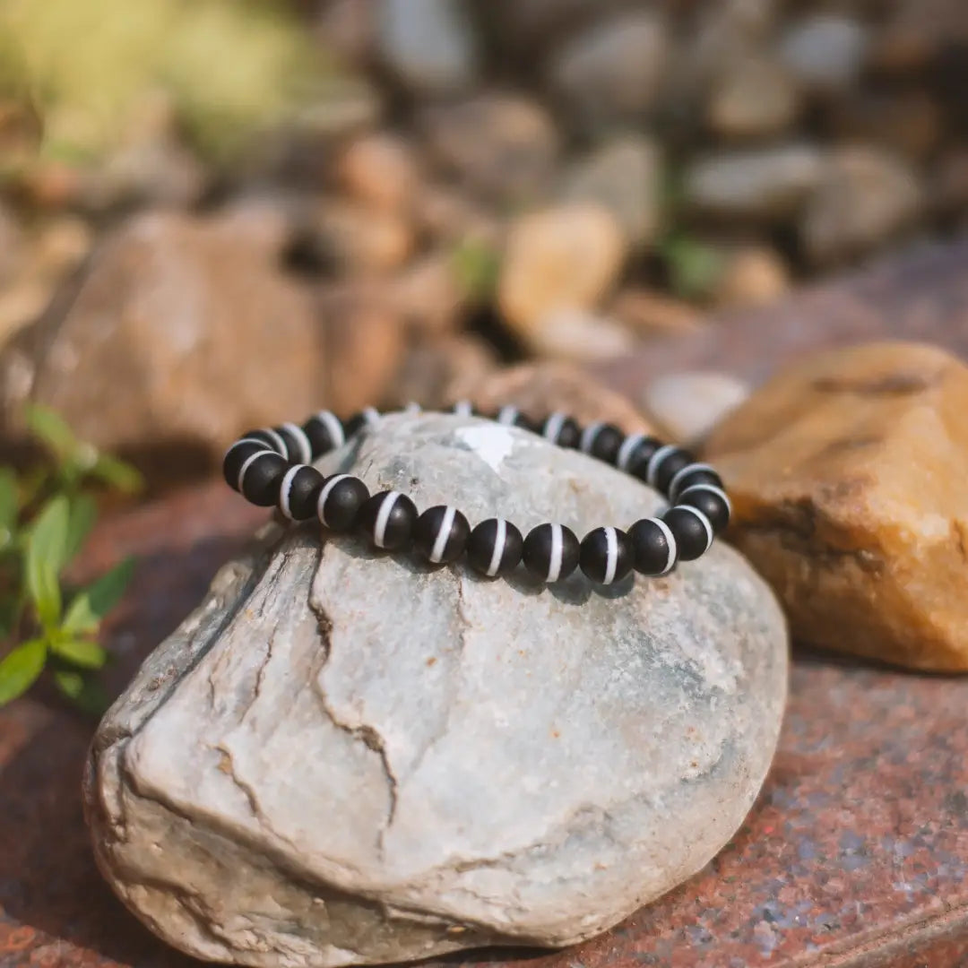 A Dzi Bracelet is a sacred Tibetan talisman known for its strong protective and healing vibrations 8mm. It invites prosperity, health, and spiritual growth while safeguarding you from negativity—making it a symbol of luck, balance, and divine blessings.