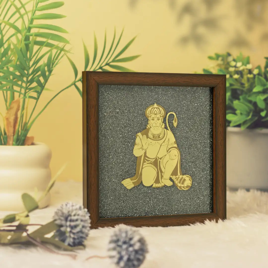 The Pyrite Hanuman Ji frame combines the divine energy of Lord Hanuman, the symbol of strength, devotion, and protection, with the powerful vibrations of Pyrite, known as the “Stone of Wealth and Protection.” Lord Hanuman is worshipped for courage, wisdom, victory over enemies, and freedom from fears. When crafted in Pyrite, this sacred piece not only provides spiritual protection but also attracts prosperity, positivity, and success.