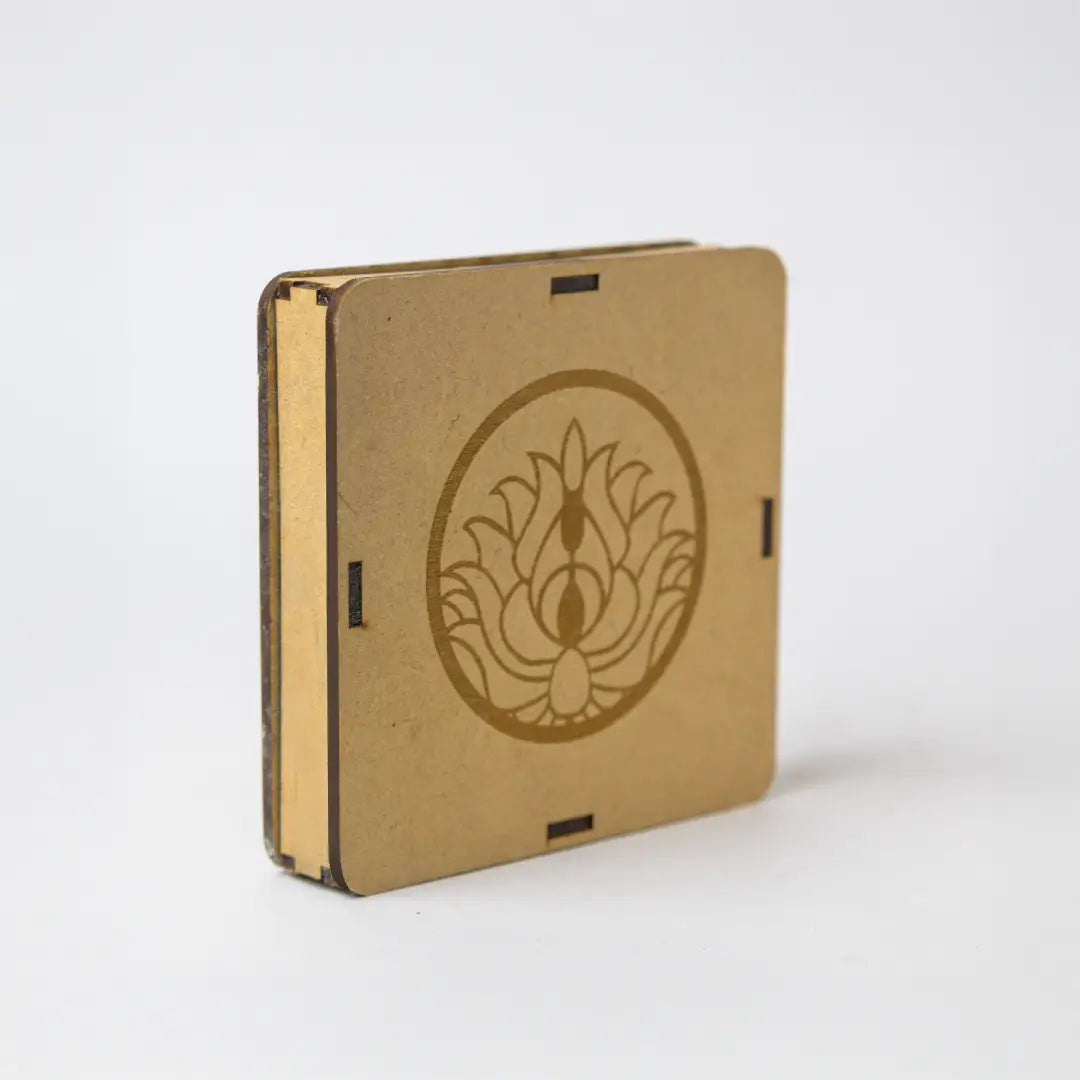 This is a Selenite crystal charging plate engraved with a golden lotus symbol. The lotus represents purity, spiritual awakening, and enlightenment, while Selenite is known for its cleansing and high-vibrational energy. Together, they form a powerful energy tool for recharging other crystals, enhancing meditation, and purifying your space.