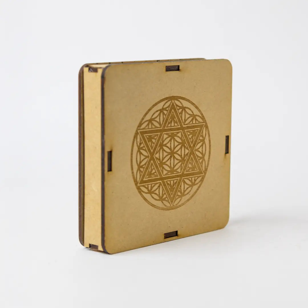 This stunning Selenite Charging Plate features a Golden Merkaba with Flower of Life design — a powerful sacred geometry symbol representing divine energy, protection, and universal connection. Handcrafted from pure selenite, it acts as a natural energy cleanser and recharger for all crystals, jewelry, and healing tools. The golden design enhances harmony, spiritual growth, and energy flow. Perfect for meditation, Reiki, or altar spaces, it radiates peace, purity, and higher vibration.