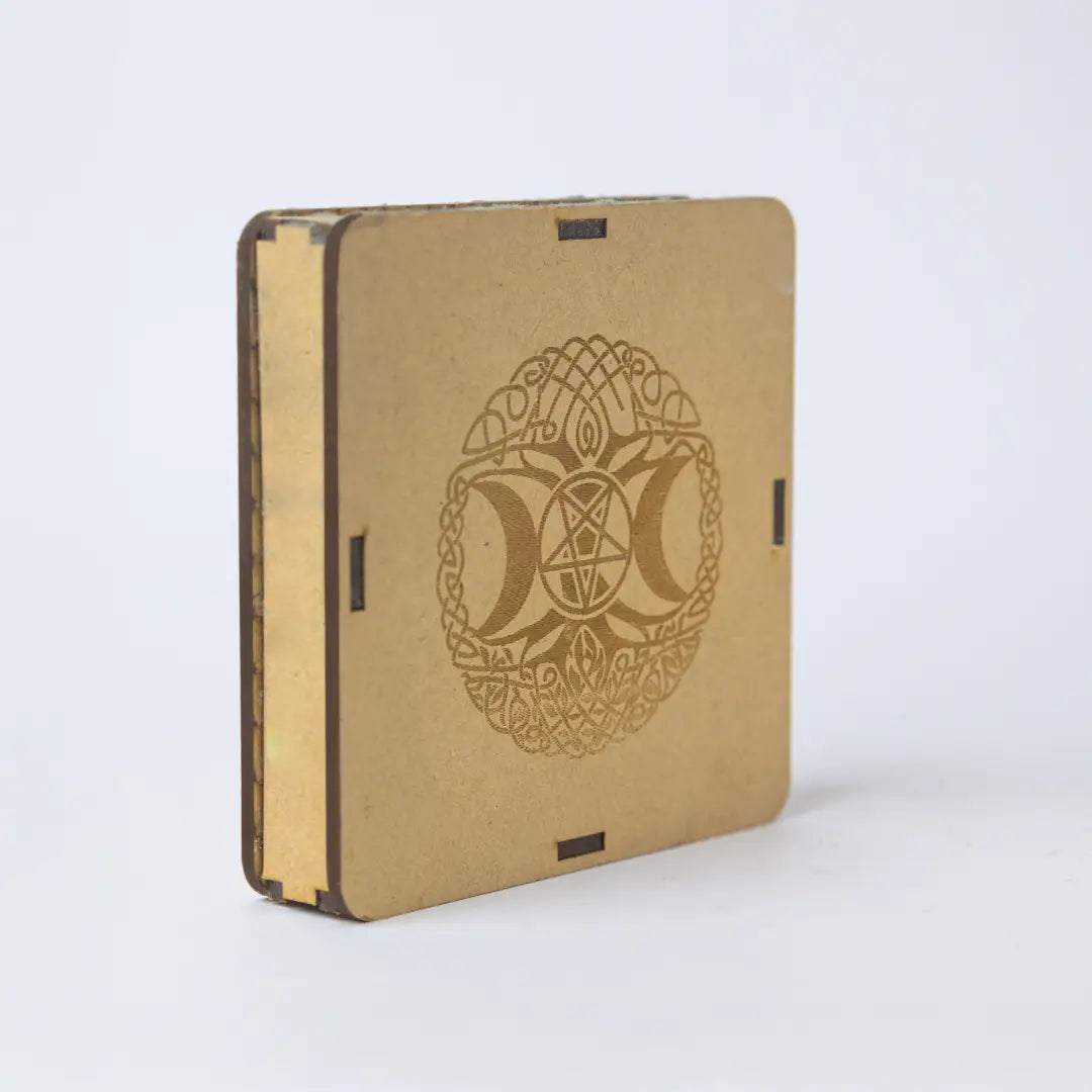 This Selenite Triple Moon Charging Plate (Square) beautifully combines the cleansing power of selenite with the sacred Triple Moon Goddess symbol. The golden design represents the divine feminine cycle — waxing, full, and waning moon — bringing balance and intuition. Ideal for recharging crystals, purifying energy, and decorating spiritual spaces. Its smooth selenite surface emits calming vibrations that help cleanse the aura and uplift the spirit. Perfect for moon rituals, meditation, or healing sessions.