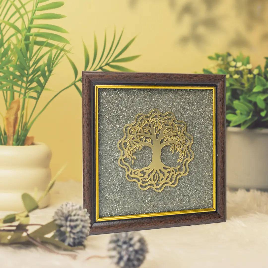 The Tree of Life Pyrite Frame features the sacred Tree of Life symbol, representing growth, wisdom, strength, and connection to the universe. When crafted on Pyrite, known as the “stone of abundance and protection,” this frame radiates both spiritual and material blessings. It is ideal for homes, offices, meditation rooms, or sacred spaces, serving as a decorative piece that attracts positivity, prosperity, and harmony.
