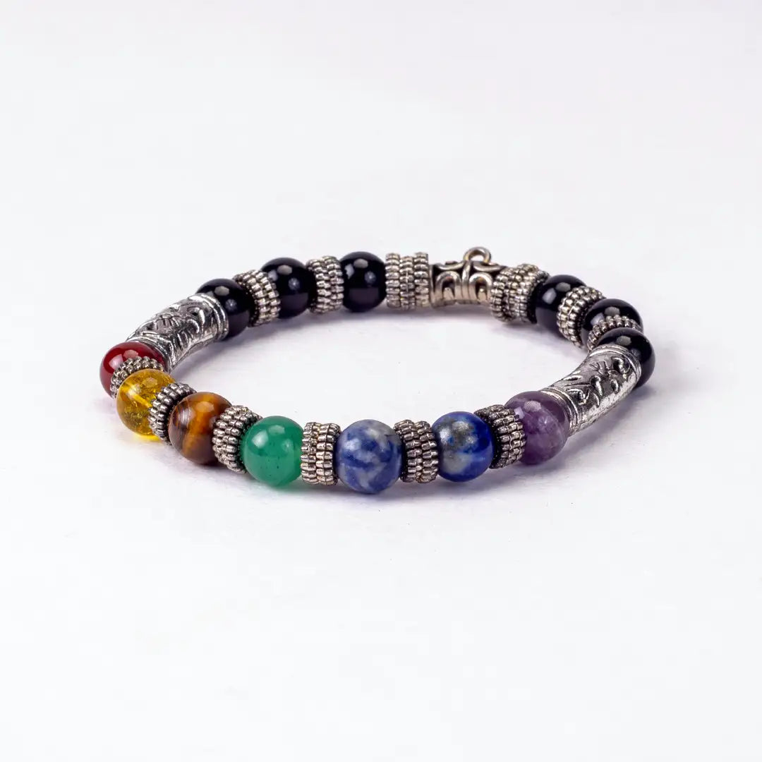 The Tourmaline with 7 Chakras Bracelet is a powerful combination of Black Tourmaline for protection and 7 Chakra stones for energy balance.